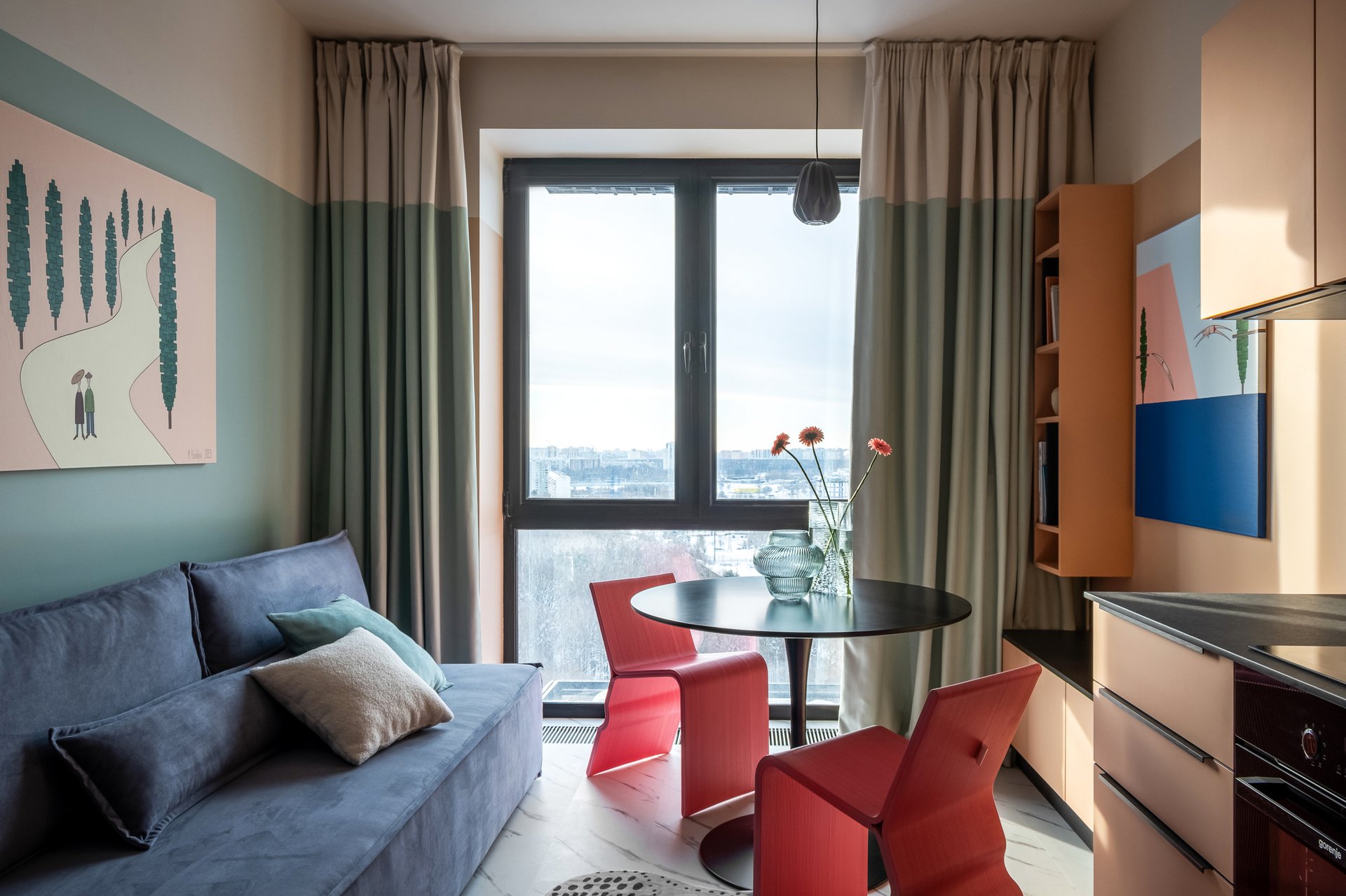 | скандинавский стиль интерьера | Mid-Century Modern дизайн | совмещение стилей | натуральные материалы в интерьере | яркие акценты в дизайне |