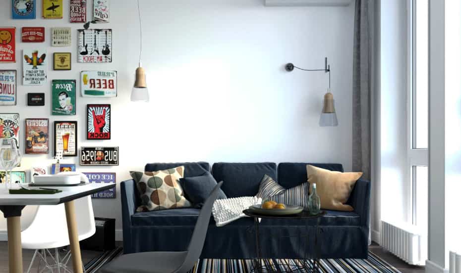 - Декоративные элементы: использование ярких деталей, например, сочных подушек или картин.