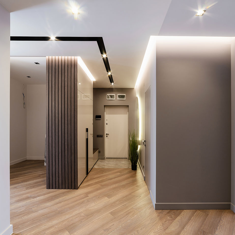 Расстановка светильников должна учитывать функциональные зоны и особенности помещения: