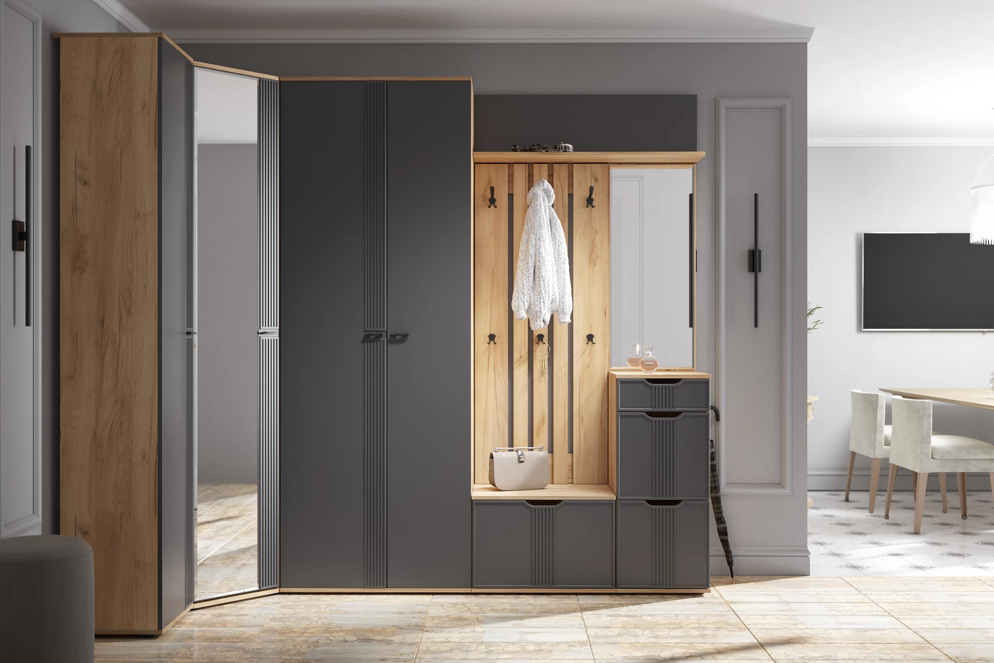 Чтобы интерьер выглядеть гармонично и современно, важно правильно комбинировать темное дерево с другими элементами: