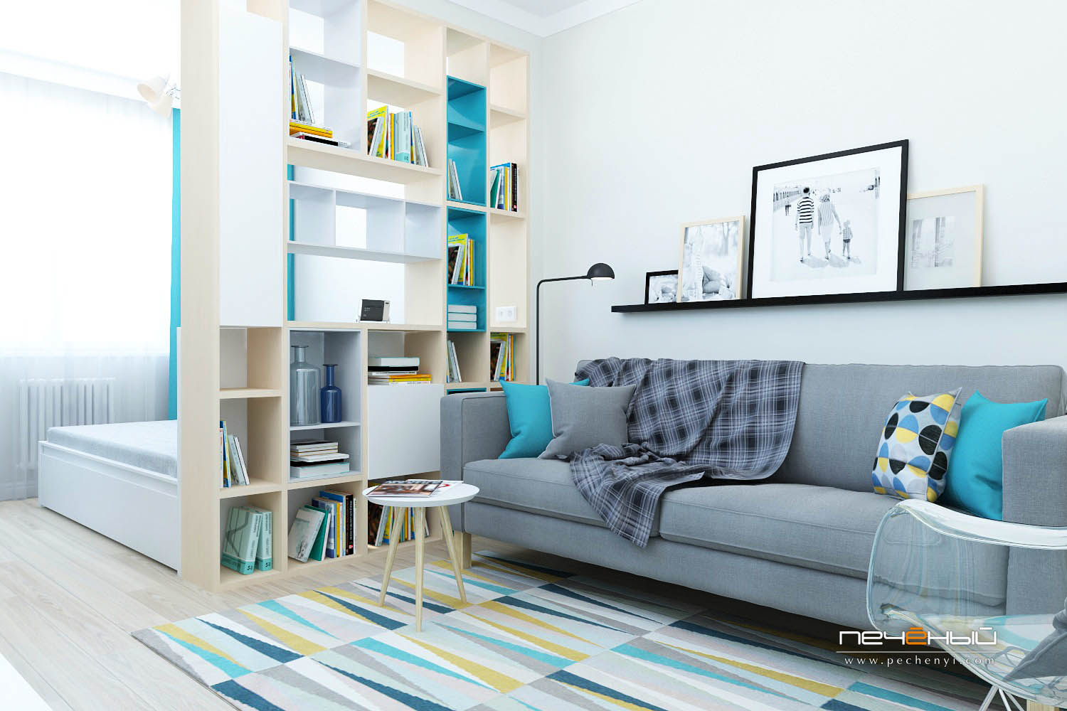 Пример зонирования в однокомнатной квартире: