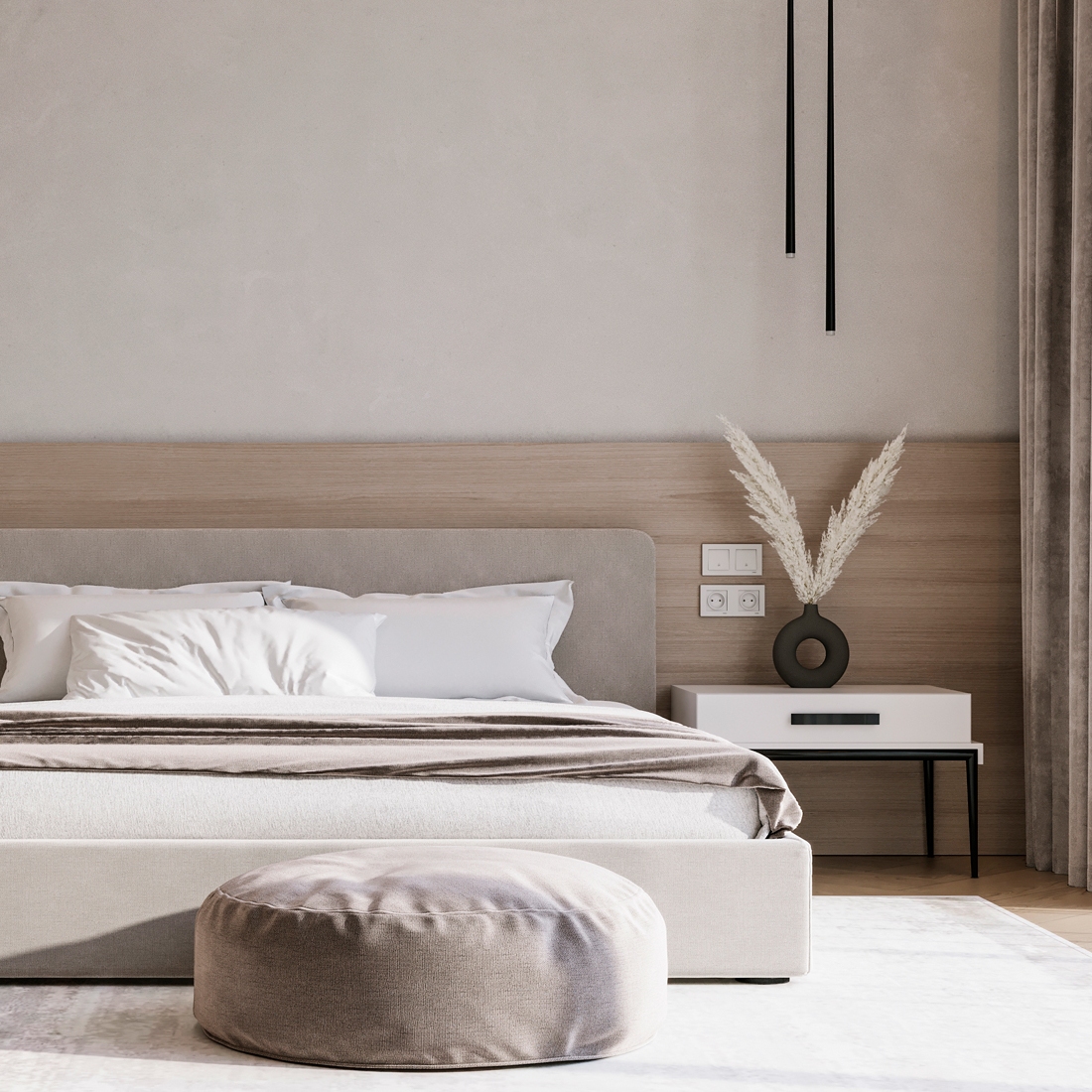 Правильные пропорции сделают вашу спальню более гармоничной и удобной. Мы также рекомендуем оставлять немного свободного пространства между тумбочками и кроватью‚ чтобы облегчить передвижение.