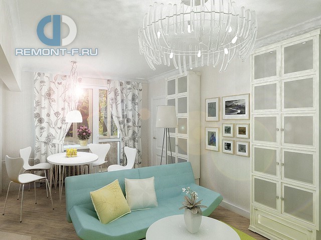 - Цветовая гамма: белый, бежевый, серый, голубой, мятный, создаёт свежесть и уют․
