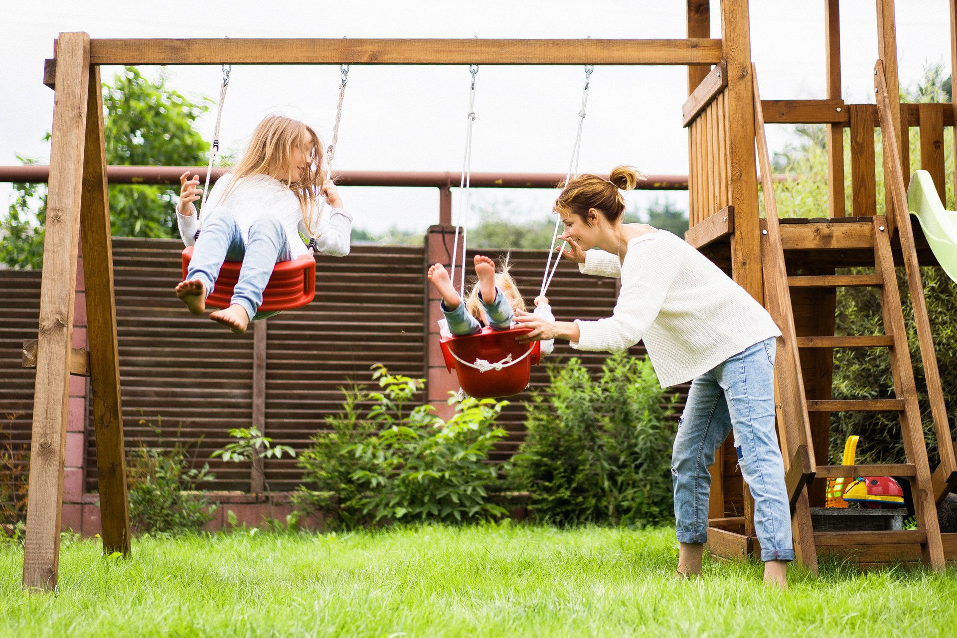 - Деревянные или металлические качели