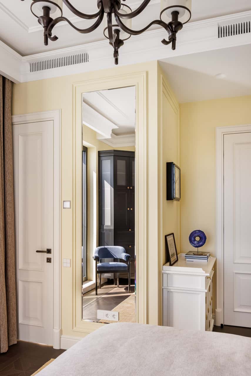 - Не размещайте зеркала прямо напротив кровати: это может нарушить спокойствие и ночной сон.