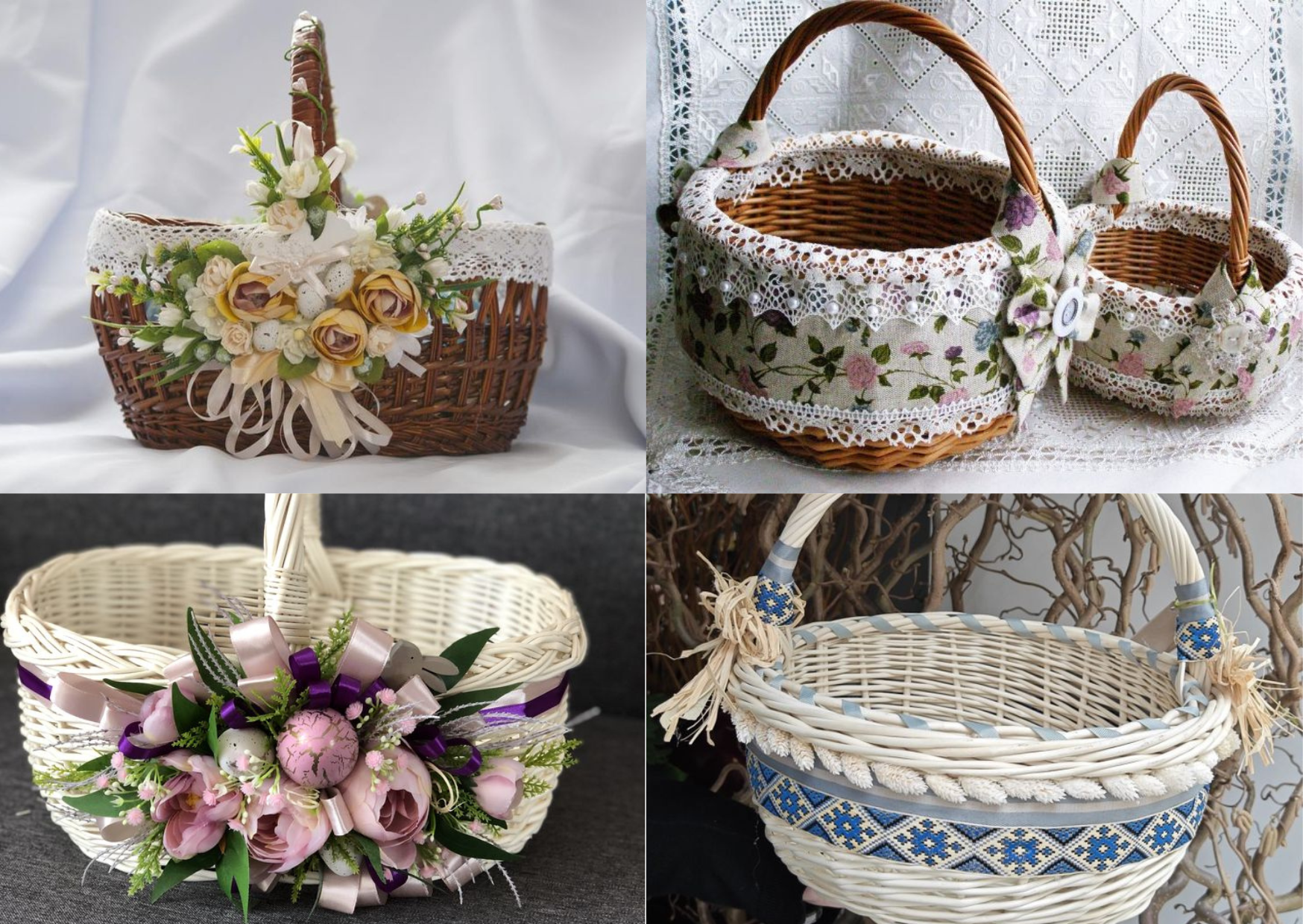 - Этнический стиль: вплетаем яркие ткани, ленты, бусины для украшения корзин․