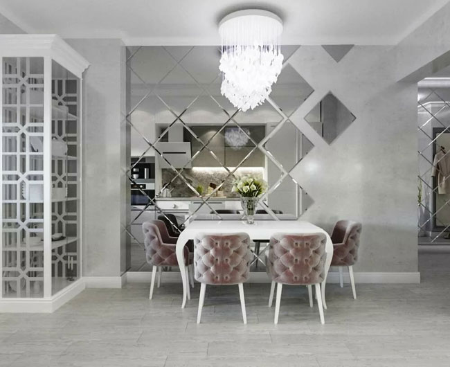 - Используйте зеркала для зонирования. Такой прием помогает разделить пространство без перегородок.